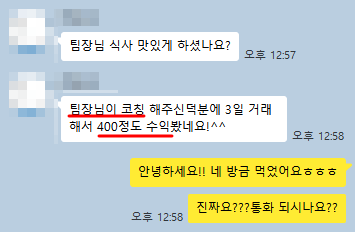 - “요셉 매니저님이 코칭 해 준 덕분에 수익도 보았어요”
